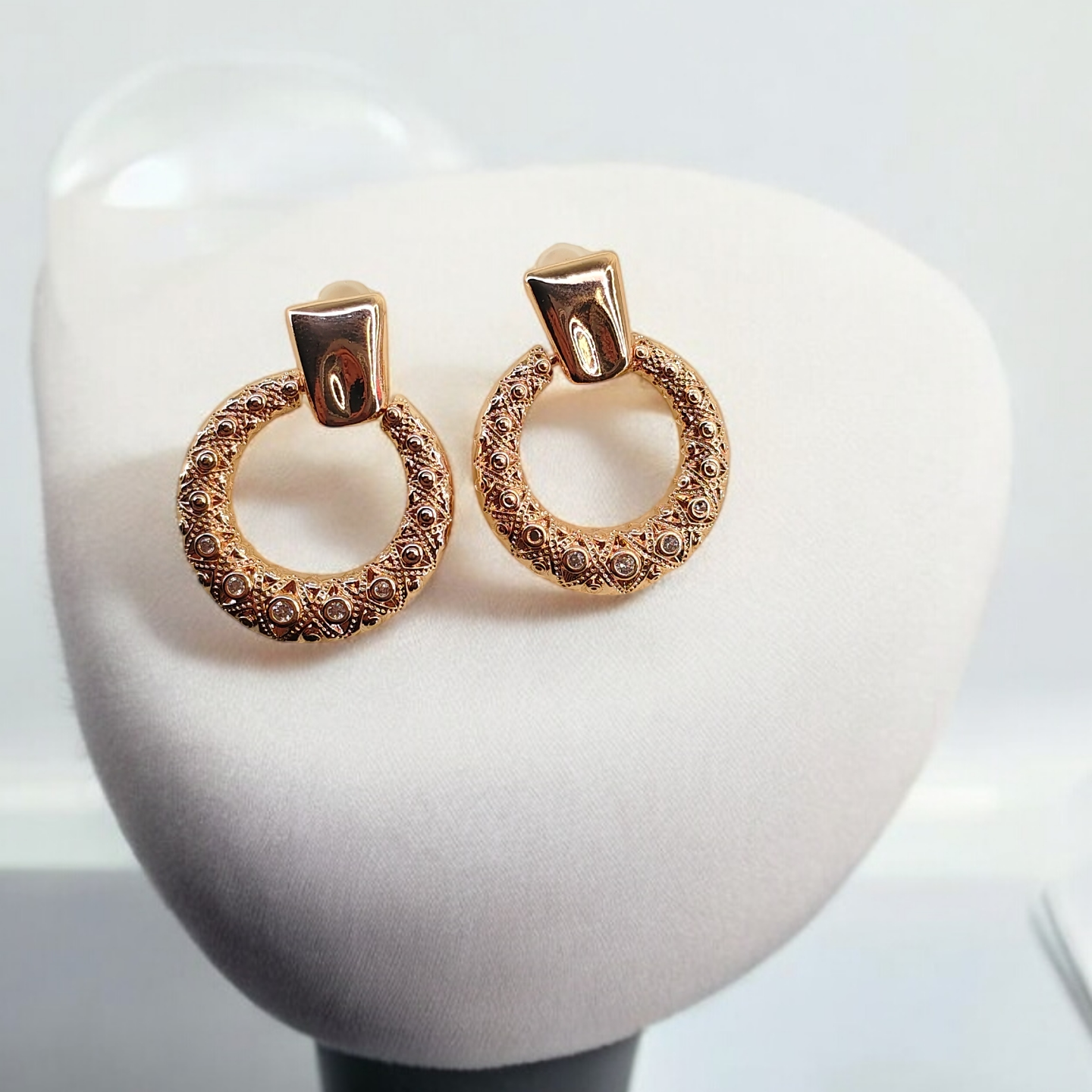 A refined blend of classic elegance and modern sparkle, the Aurelia Halo Stud Earrings feature a textured circular silhouette accented with subtle brilliance. Designed to sit gracefully on the ear, these earrings add a polished glow that feels luxurious yet effortless.