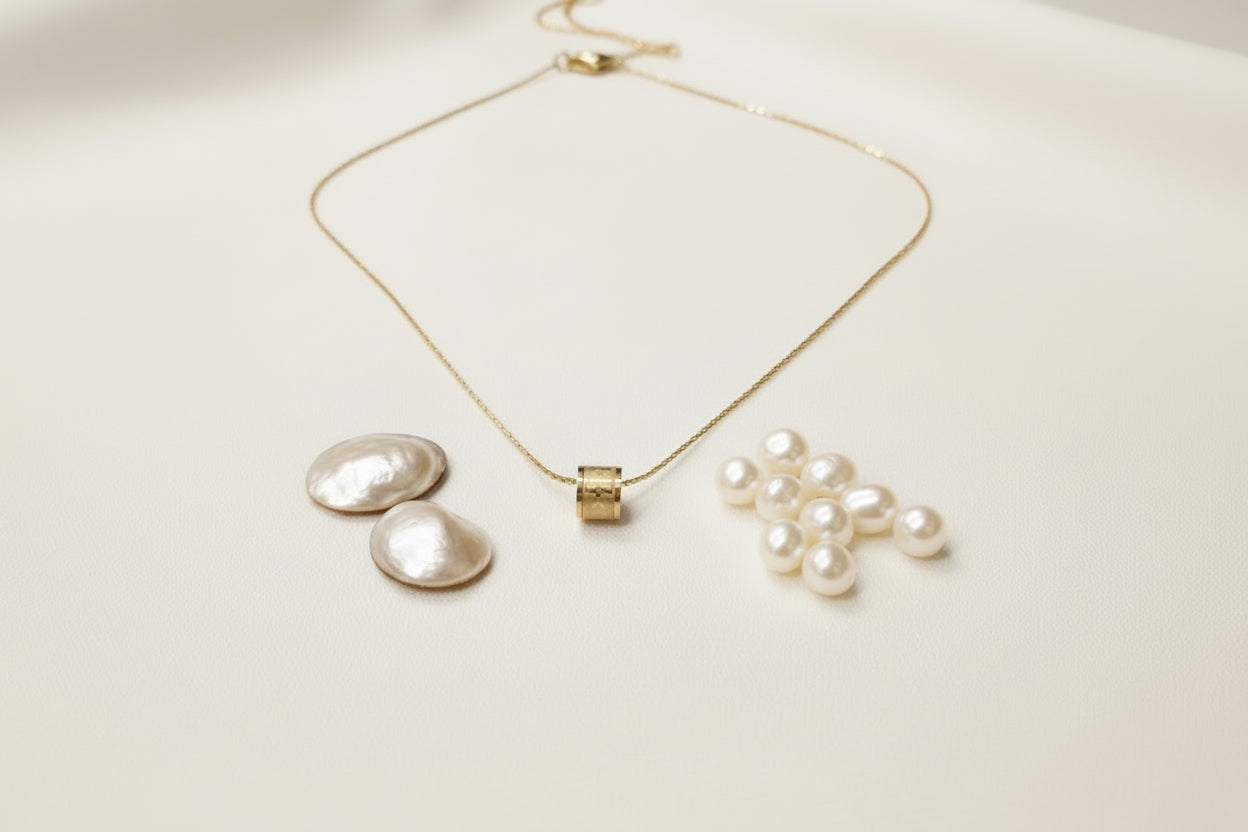 Understated yet distinctive, the Celeste Barrel Charm Necklace features a sleek cylindrical pendant with delicate engraved detailing, suspended on a fine gold chain. Its minimal form and refined finish make it a timeless piece that blends seamlessly into both everyday and elevated looks.