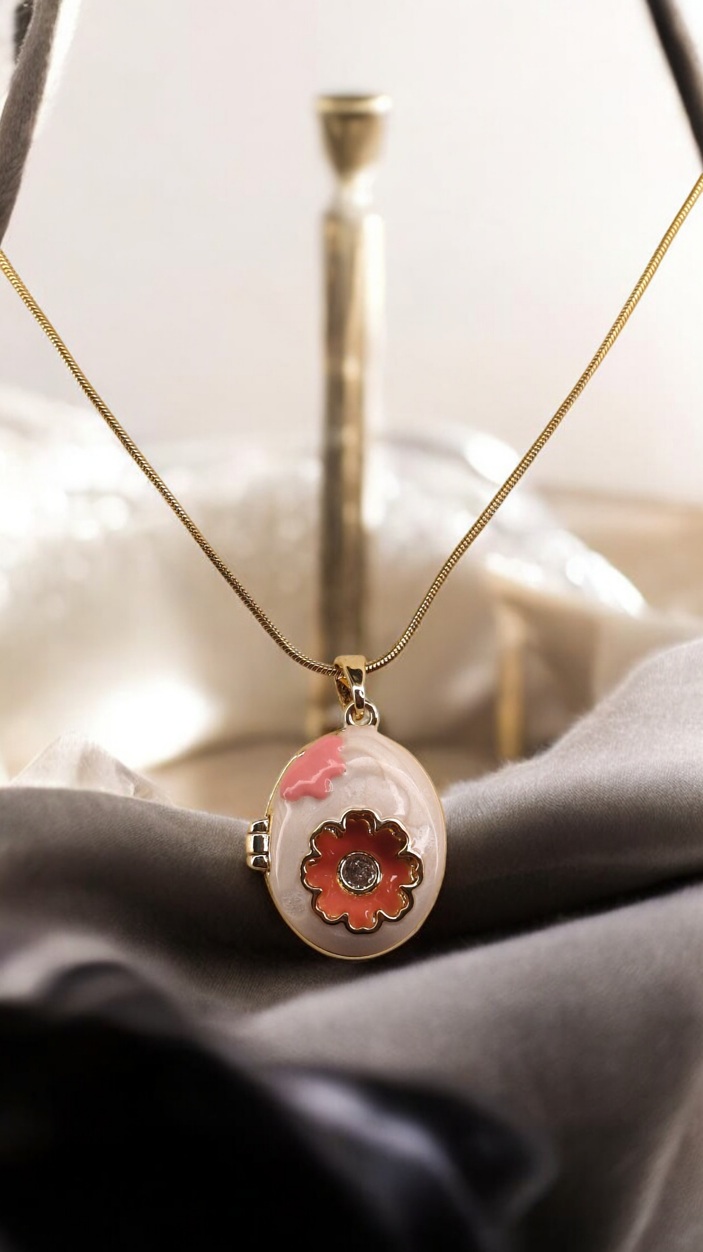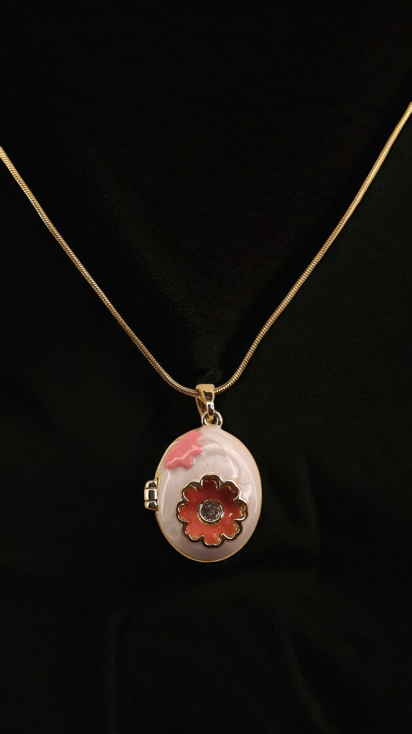 Soft, feminine and quietly captivating — the Rosette Whisper Locket Necklace is designed for women who love subtle romance in their everyday style. Featuring a delicate oval locket with a blush-toned floral motif framed in warm gold, this piece adds a gentle statement without overpowering your look. Elegant yet playful, it’s the kind of necklace that feels personal the moment you wear it.